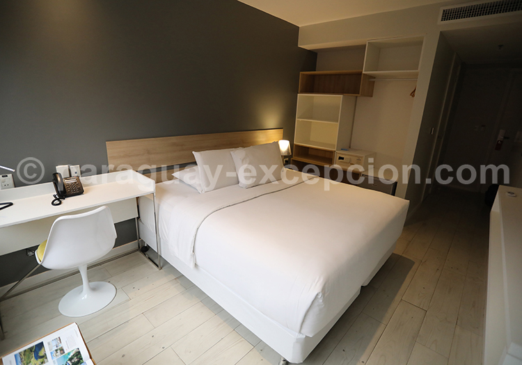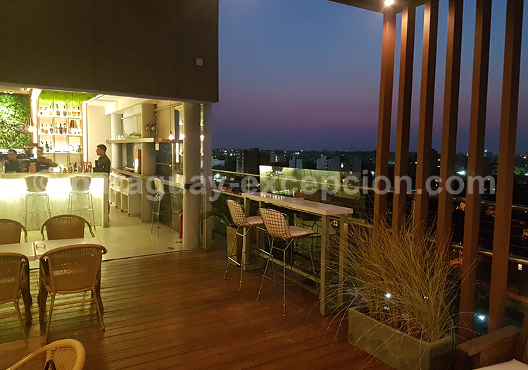 Étendue sur une dizaine d’étages, la vue sur Asunción depuis le toit terrasse est imprenable. Elle s’apprécie depuis la piscine extérieure à débordement ou encore depuis une chaise longue, avec un des bons cocktails de la maison à la main.