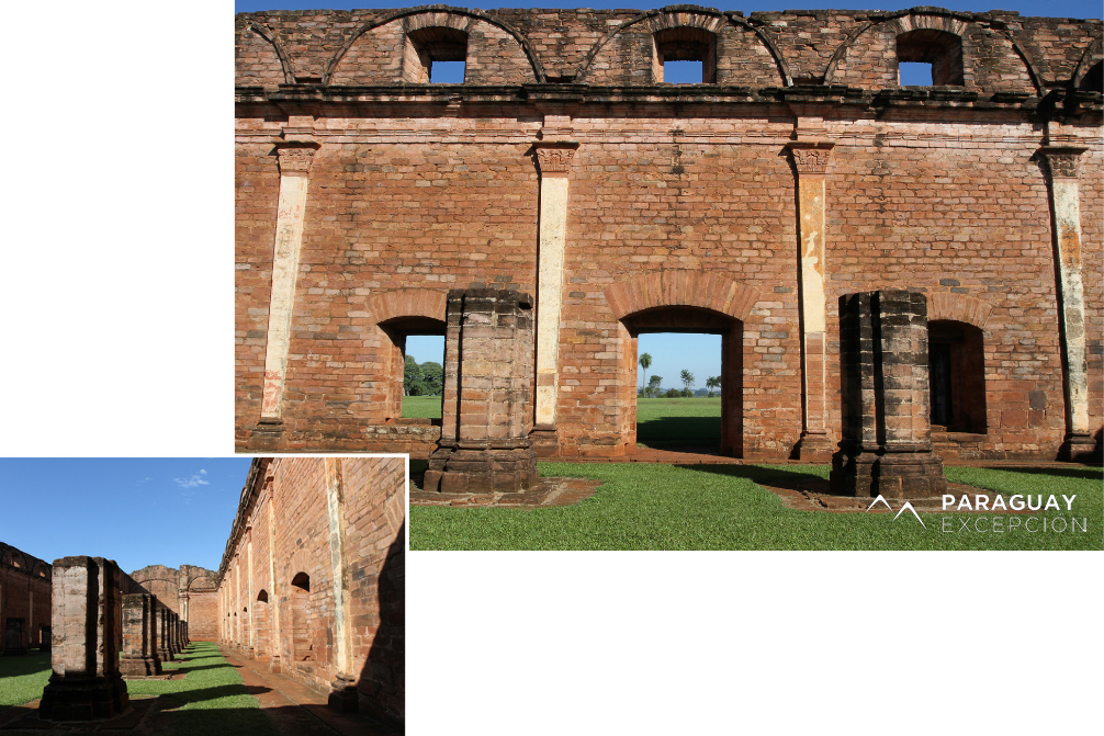 La réduction se composait de cette grande église qui surplombe le parc, mais aussi d’une école, d’un atelier, d’un jardin et des nombreuses ‘‘casa de indios’’, maisons destinées aux guaranis. Prospère, elle était le lieu de vie de ces communautés supervisées par un petit groupe de Frères. Ils ne les considéraient pas comme esclaves mais plutôt comme disciples, les protégeant ainsi des bandeirantes portugaises et des chasseurs d’esclaves brésiliens. Ils les alphabétisaient et leurs enseignaient la maçonnerie, mais aussi l’art comme les sculptures et la musique. Un nouveau courant issu de ce choc culturel a d’ailleurs émergé : le baroque guarani.