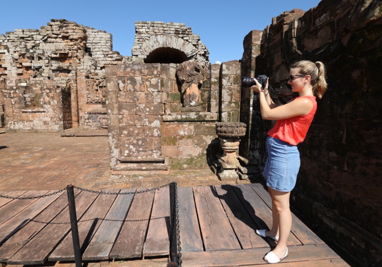 Après une pause déjeuner, un court déplacement s’impose pour se rendre à la mission de Jesus de Tavarangue. Cette réduction est d’abord fondée en 1685 sur les bords du Río Monday avant d’être déplacée à son emplacement actuel en 1758. À partir de cette date, son impressionnante église s’érige mais elle restera inachevée en raison de l’expulsion des jésuites en 1767. Elle aurait du être la plus imposante de toute la région avec 70 m de long sur 24 m de large et trois entrées principales. En rayonnant à Jesus de Tavarangue, on peut toujours distinguer la grande place, les demeures des pères jésuites et des caciques guaranis, la prison, le verger, le cimetière mais aussi l’école rattachée à l’église. Les imposants piliers centraux sont restés intacts et devaient servir à soutenir le futur toit. Mais, ce qui surprend le plus reste l’association de différents styles, notamment le style mudéjar (christiano-arabe) avec ses arches trilobées. Son portail s’inspirant même de la mosquée de Cordoba en Espagne. Jesus de Tavarangue diffère architecturalement parlant, des autres missions que vous pourrez admirer au Paraguay.