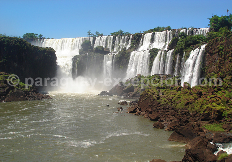 Les chutes d’Iguazú situées à la frontière entre Brésil et Argentine sont à environ 30 kilomètres de la ville de Ciudad del Este. Situées au milieu de la forêt tropicale, elles sont classées au patrimoine mondial de l’UNESCO. Le mot « Iguazú » trouve ses origines dans la langue guarani, I signifie « eau » et « guazu » grand : « les grandes eaux ». Le parc national rassemble près de 280 cascades avec des chutes d’eau hautes de 80 mètres, un paysage grandiose où la nature règne.